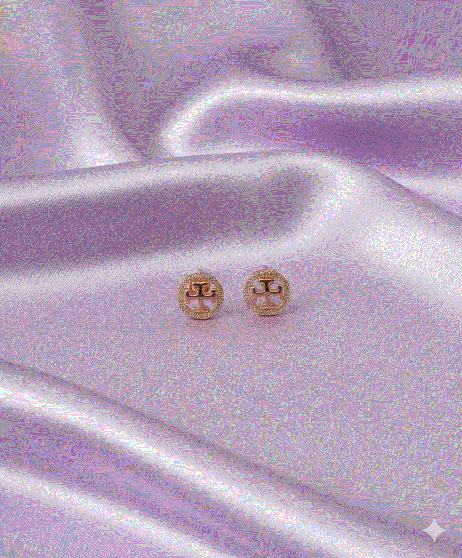 Elevate your daily ensemble with our Designer Inspired Luxury CZ Intimate Jewelry stud earrings, the ultimate blend of sophisticated style and everyday wearability. These striking circular studs feature a radiant rose-gold tone finish, framing a chic, interlocking geometric motif at the center. The surrounding halo of micro-pave set Cubic Zirconia (CZ) stones ensures maximum brilliance, catching the light with a gentle, yet undeniable sparkle.